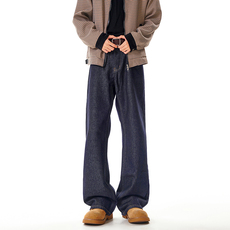 190加长加绒裤子男生高个子冬季复古阔腿牛仔裤男款休闲直筒长裤