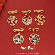 生肖龙胸针熊猫锦鲤可爱动物金属徽章男女创意别针包包衣服装饰品