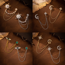 欧美胸针男士百搭衣领链徽章复古流苏链条衣领扣星月动物链条别针