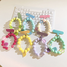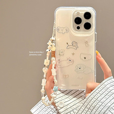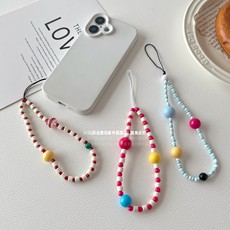 日韩ins手工串珠手机壳挂链小清新花朵串珠手链挂饰品女款diy手工挂件手提手拎手机配件通用相机包包吊坠链条