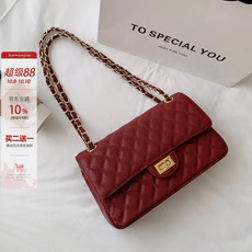 小香风酒红色鱼子酱包包真皮腋下包女高级感单肩斜挎菱格链条包冬