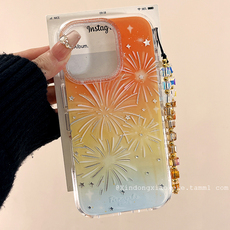 ins韩系橙蓝渐变烟花适用苹果iPhone17ProMax手机壳16pro新款14带链条13小众14promax硅胶17pro创意15全包16