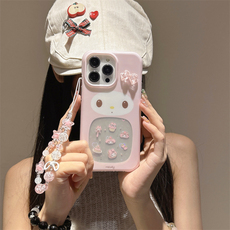 韩系ins少女心可爱镂空甜品美乐蒂苹果15蝴蝶结手机壳16promax新款iphone13创意双层带链条全包14p手机套适用