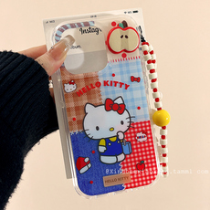 可爱卡通格纹HelloKitty适用苹果iPhone17ProMax手机壳16pro新款14带链条13小众14promax硅胶15pro创意15全包