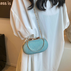 2025春夏新款丝绸牛皮手提小包包宴会包时尚真皮口金包链条单肩包