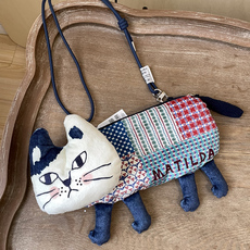 GLADEE日本牛仔猫笔袋异瞳猫化妆小物收纳包Denim Black Cat