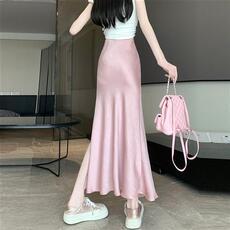 松弛感真丝缎面高腰半身裙女夏季新款丝滑垂感A字长裙包臀鱼尾裙