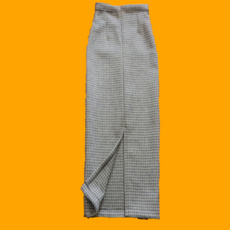 冬季加厚保暖千鸟格双面毛呢后开叉半身长裙高腰包臀旗袍式开叉裙