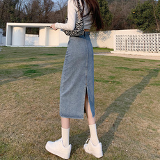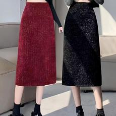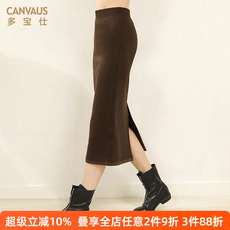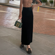 多宝仕秋冬韩版薄绒半身裙女松紧百搭开叉休闲裙子紧身长裙包臀裙