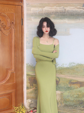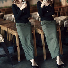 春秋新款女装复古港味包臀半身长裙直筒裙修身军绿色休闲百搭裙棉