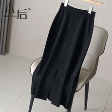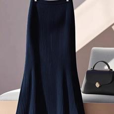 专柜撤回新款藏蓝色针织包臀鱼尾半身裙子女显瘦气质高腰a字长裙