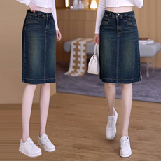 牛仔半身裙女夏季高腰中长款2025春秋新款a字显瘦包臀开叉中长裙