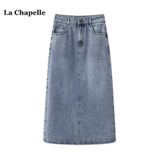 拉夏贝尔/La Chapelle复古高腰牛仔半身裙女春夏新款开叉包臀长裙