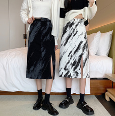 欧美风秋冬复古女装金丝绒半身裙后开叉半身长裙包臀一步裙女大码