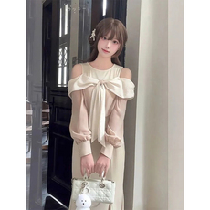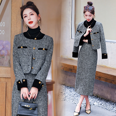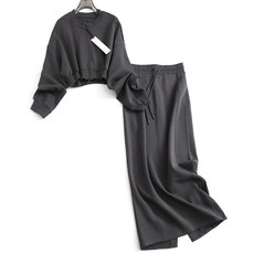 春秋时髦时尚洋气穿搭女别致绝美长袖衬衫包臀半身中长裙两件