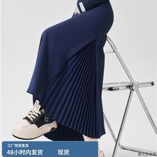 藏青色垂感百褶长裙女早秋高腰a字包臀垂感广州十三行显瘦半身裙