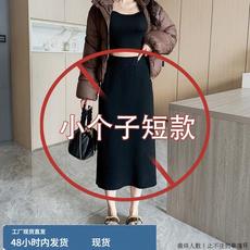 150小个子黑色直筒半身裙女秋冬2024新款高腰A字中长裙显瘦包臀裙