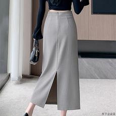 包臀半身裙女秋冬新款高腰开叉一步裙中长款显瘦职业包裙大码长裙