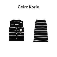 荡领五分袖设计感围脖针织衫上衣女包臀裙半身裙松紧腰长裙套装
