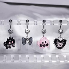 墨刺研究室 猫咪肚脐钉蝴蝶结爱心吊坠钛钢甜辣妹脐钉ins穿刺饰品