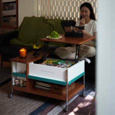 出乎生活和序升降茶几可折叠家用客厅小户型推车茶台茶桌黑胡桃木
