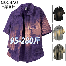夏季百搭工装短袖衬衫大码宽松男士新款泡泡纱开衫青少年亲肤半袖