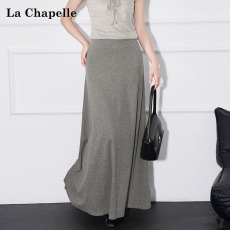 拉夏贝尔灰色软糯半身裙女夏季高腰显瘦a字鱼尾裙中长款包臀裙子