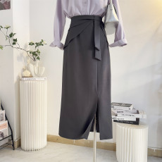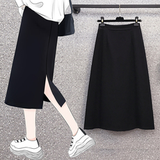 外贸松紧腰半身裙 春夏季新款百搭包臀开叉裙中长款显瘦裙子08043