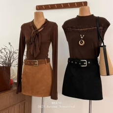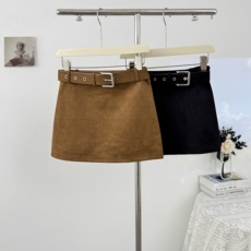 秋冬复古美式仿鹿皮绒高腰显瘦半身裙女防走光短裙包臀裙子配皮带