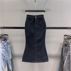 复古性感包臀鱼尾半身裙女2025秋季中长款高腰显瘦开叉牛仔长裙子