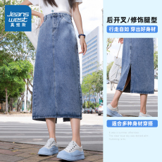 LY女装裙子 夏季开叉牛仔半身裙a字裙中长款直筒包臀裙女款