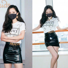 明星同款四季甜美短裙半身裙亮面皮裙子高腰微A防走光性感包臀裙