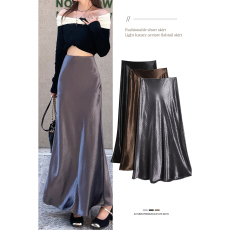 加大码胖mm黑色高端金丝绒半身裙女春秋冬中长款一步裙包臀裙裙子