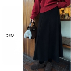 MISS RUILI 定制 加厚毛呢半身裙冬季显瘦垂感分割拼接A字裙F1514