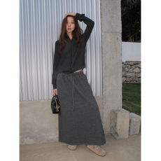 DM100大码百分百女装微胖mm冬季纯色百搭肌理针织伞摆长款半身裙