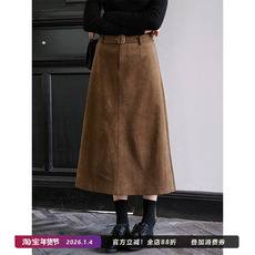 NHOO恩逅 褶皱设计感A字灯芯绒半身裙女秋冬新款棕色中长款裙子