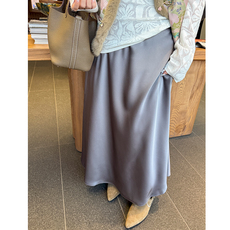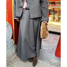SIXI四喜家 绒感糯糯裙 深花灰休闲半身裙女秋冬松紧腰A字中长裙