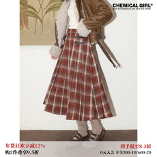福饮沸别【树莓小蛋糕】冬季大码胖MM甜美格纹毛呢半身裙2614