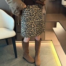 美式复古圈圈豹纹毛呢半身裙女冬季新款高腰显瘦时尚百搭A字短裙