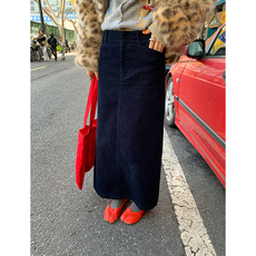 复古直筒黑色灯芯绒半身裙秋冬款大码女胖mm显瘦a字开叉长款裙子