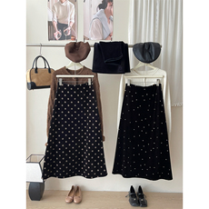Serein Kare|秋冬丝绒串珠绣花松紧带高腰a字半身裙内搭中长半裙