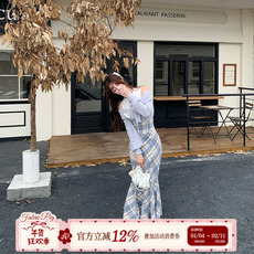 罗衣优雅女人味高腰毛呢半身裙女冬灰色贵气感鱼尾摆包臀裙13141