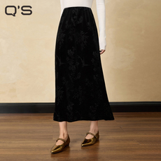 QS秸熙25冬新款复古新中式轻国风丝绒半身裙高级感暗纹烧花A摆裙