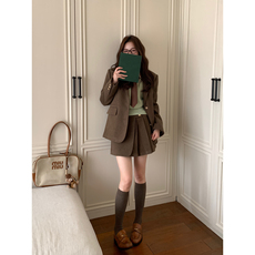 妖精的口袋复古咖色仿麂皮休闲百褶裙女2025秋冬新款小个子半身裙