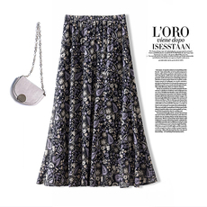 法式复古印花半身群春夏季新款高腰松紧雪纺中长款遮胯显瘦