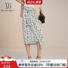 XG/雪歌2025夏款百搭气质显瘦碎花半身裙中长裙子女XK203013B293