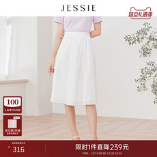 JESSIE法式复古绣花中长款精致A字半身裙春夏款气质纯色百搭裙子