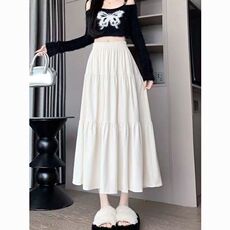 白色新款半身裙2025春夏款显瘦高腰小个子气质中长款蛋糕裙长裙子