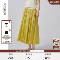 EXCEPTION例外女装春夏款半身裙H型亚麻抽褶设计自然要中长裙子女