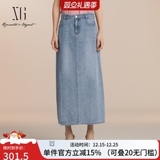 XG/雪歌2025夏款百搭显瘦高腰牛仔半身裙中长裙子女XK203024A220